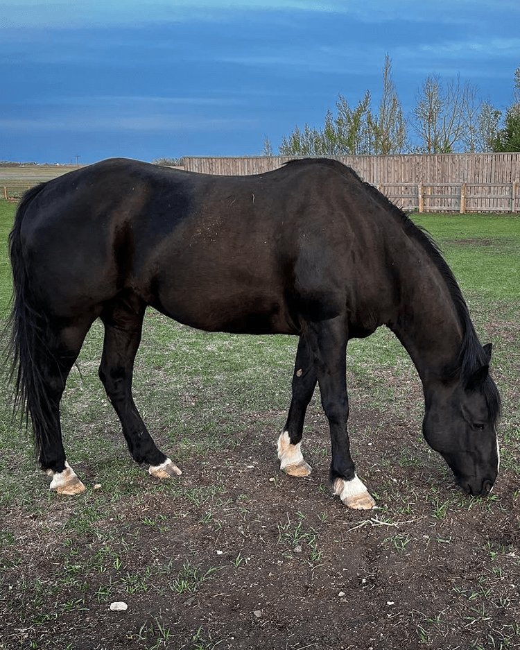 Our newest herd member Cass (aka Cassanova) is a stunning black beauty that enjoys wandering the pasture. He can be a bit on the shy side but once his trust is earned he loves with his whole heart.