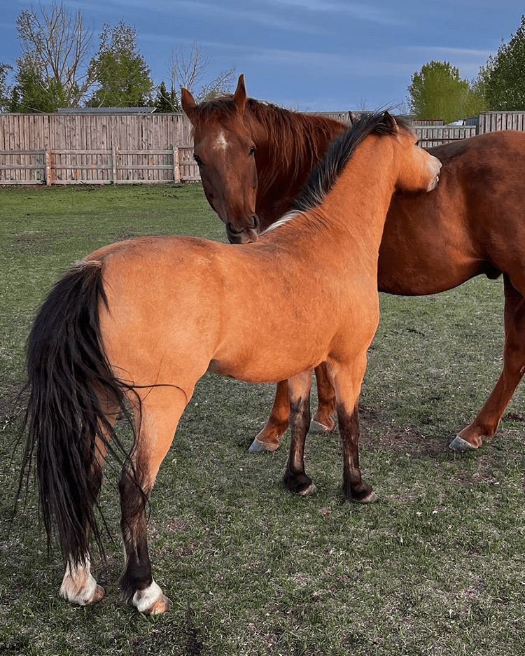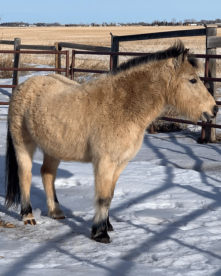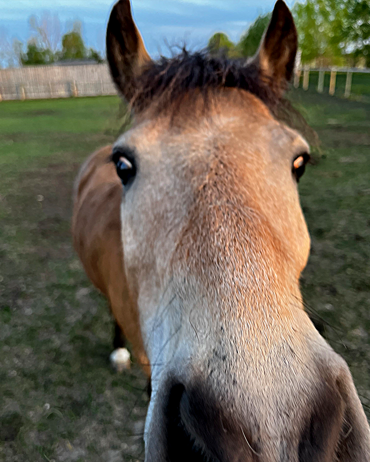 Zoltan, the chestnut gelding, is the senior member of the herd at 14 years old. He is a giant puppy dog and always the first one at the fence to greet visitors. While he will happily eat any treats offered, a few good nose scratches is really what he’s after.